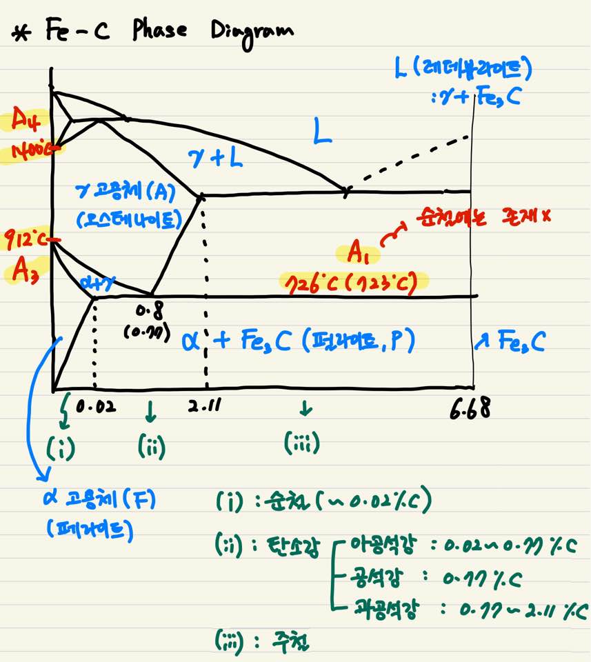 이제 Fe-C Phase Diagram에 관련된 내용정리와 나머지 부분 정리를 하겠습니다.