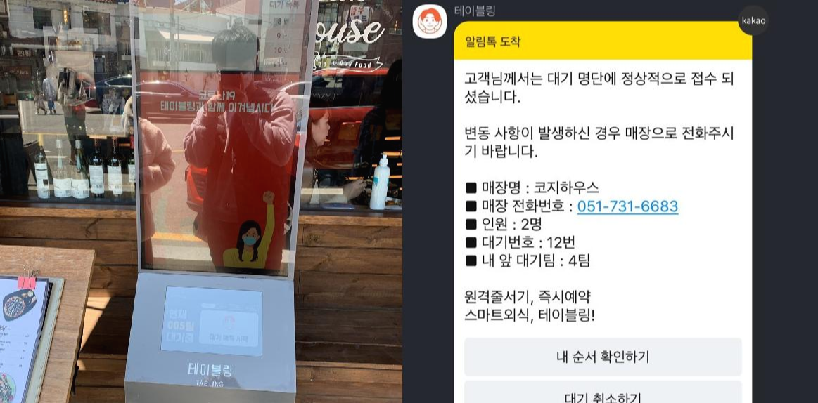 식당에 사람들이 많기 때문에 먼저 테이블링을 기계를 통해 예약을 하신 후