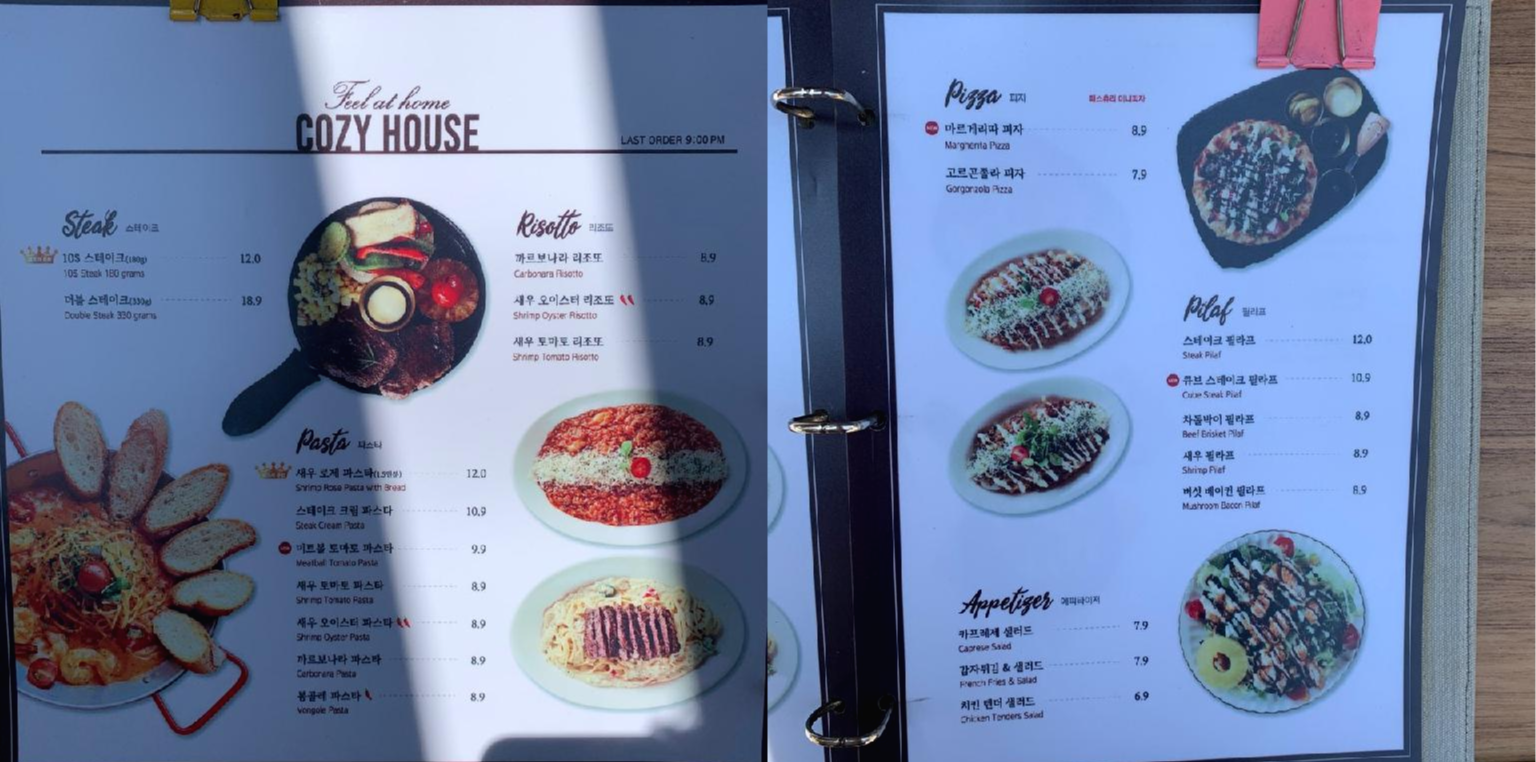 만약 'COZY HOUSE'를 가신다면 다른 메뉴들도 많이 있어보였지만