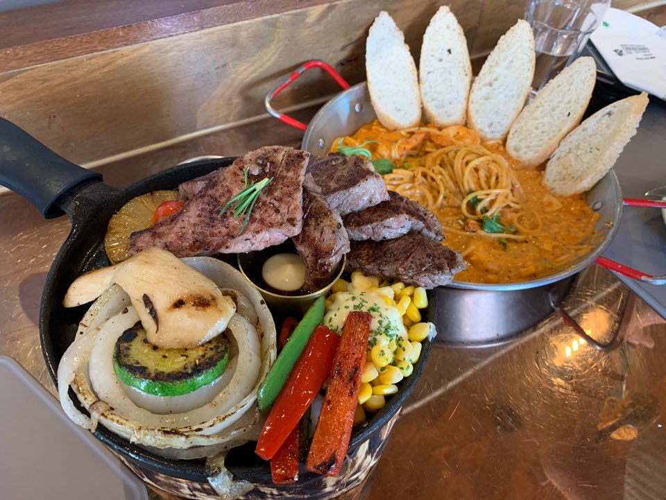 저희는 대표 메뉴라고 되어있는 '10$ 스테이크'와 '새우 로제 파스타'를 주문하려다가