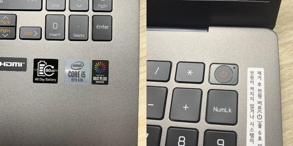 베터리, 10세대 i5, 그래픽카드 스티커가 오른쪽 하단에 붙어있습니다.