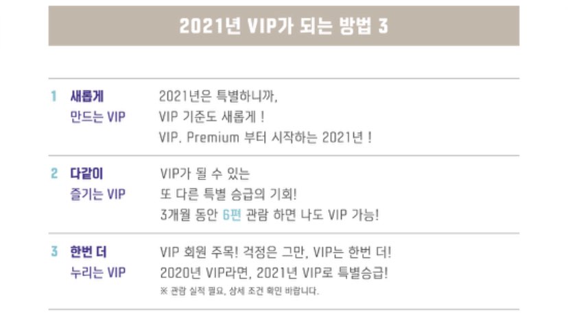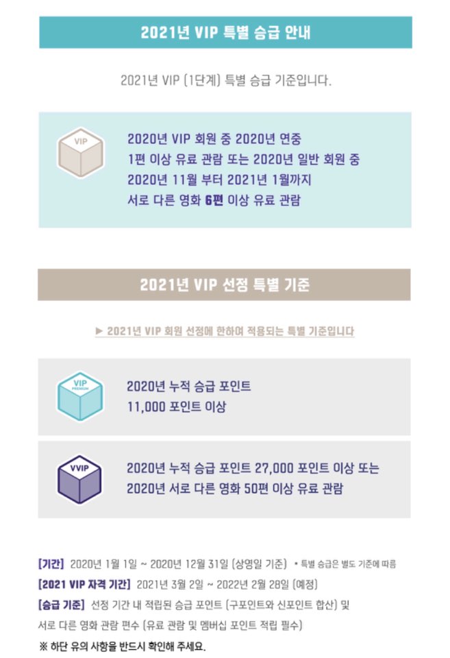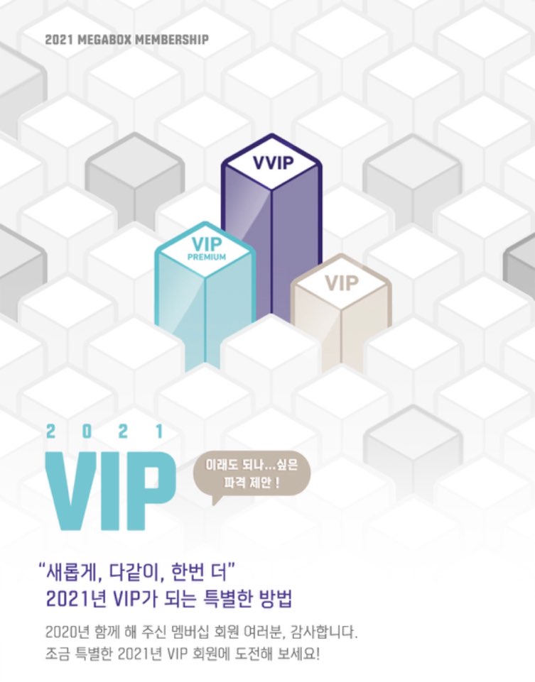 링크를 통해 작년 2020년 메가박스 멤버십과 VIP 선정 기준 및 혜택을 잘 보고 오셨겠죠?